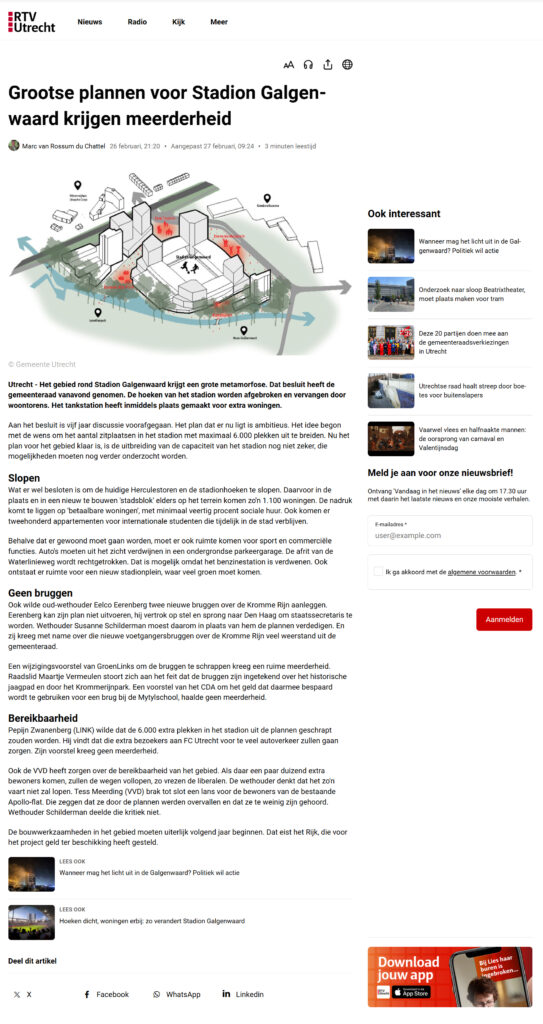 In 2024 en 2025 hebben we bijgedragen aan masterplan-ontwikkeling en opstellen SPvE voor de ambitieuze ontwikkelingen rondom de Galgenwaard. Dit betreft een spectaculaire transformatie van Stadion en omgeving waarbij op de hoeken van het stadion en het naastgelegen te ammoveren tankstation een 6-tal woontorens zullen verrijzen.